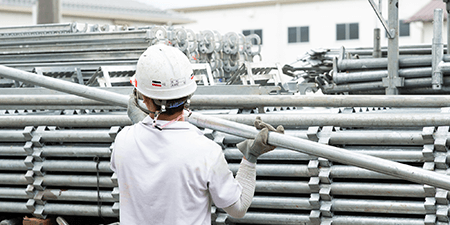 ビルや橋梁、倉庫や発電所など、様々な構造物の建設に必要となる、足場・安全設備を設置します。外壁の塗装や補修のための工事にも必要となります。当然足場の解体も含まれます。